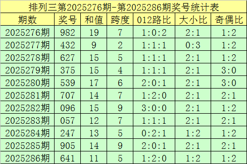 开奖转头:陈列三第2025286期奖号开出:641,组选类型:组六,大小比为1:2,奇偶比为1:2,和值为11山东欧佩克润滑油有限公司,跨度为5。