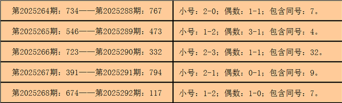 统计3D历史上已开出的奖号发现,在运动5期开奖号码中:3D在第2025264期-第2025268期辞别开出奖号:734-546-723-391-674。