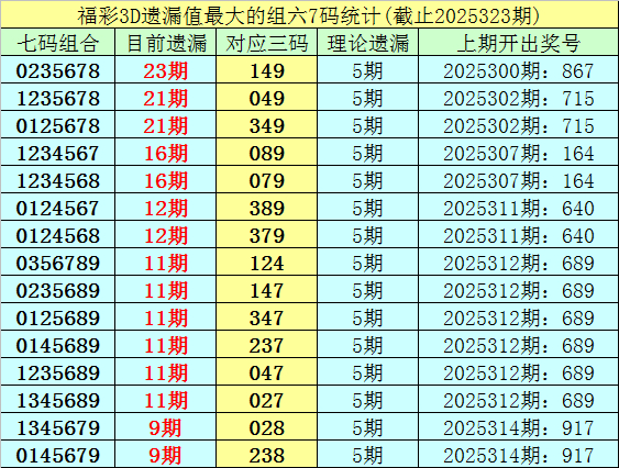 福彩3D七码遗漏组六分析(第2002001期-第2025323期)