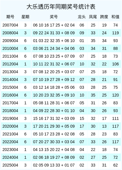 和值信息:在积年同时数据中,开出的和值大小比为9:10,奇偶比为11:8,旧年同时奖号和值为62,本期权衡和值会开在78近邻。